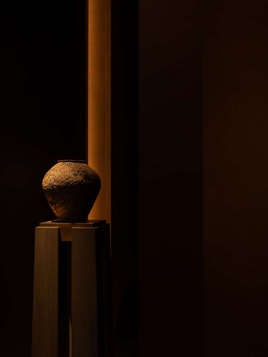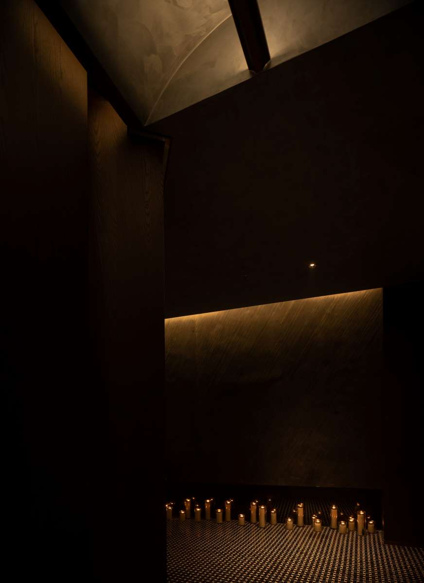 下照光线和摇曳的烛光在明暗变幻间相遇,开启一场无声的对话,看似毫无目的探索,实则将设计思考具象化,而这一切,又似乎能被概括成一种难以言传的“感受”,内心很多东西被唤醒了 。