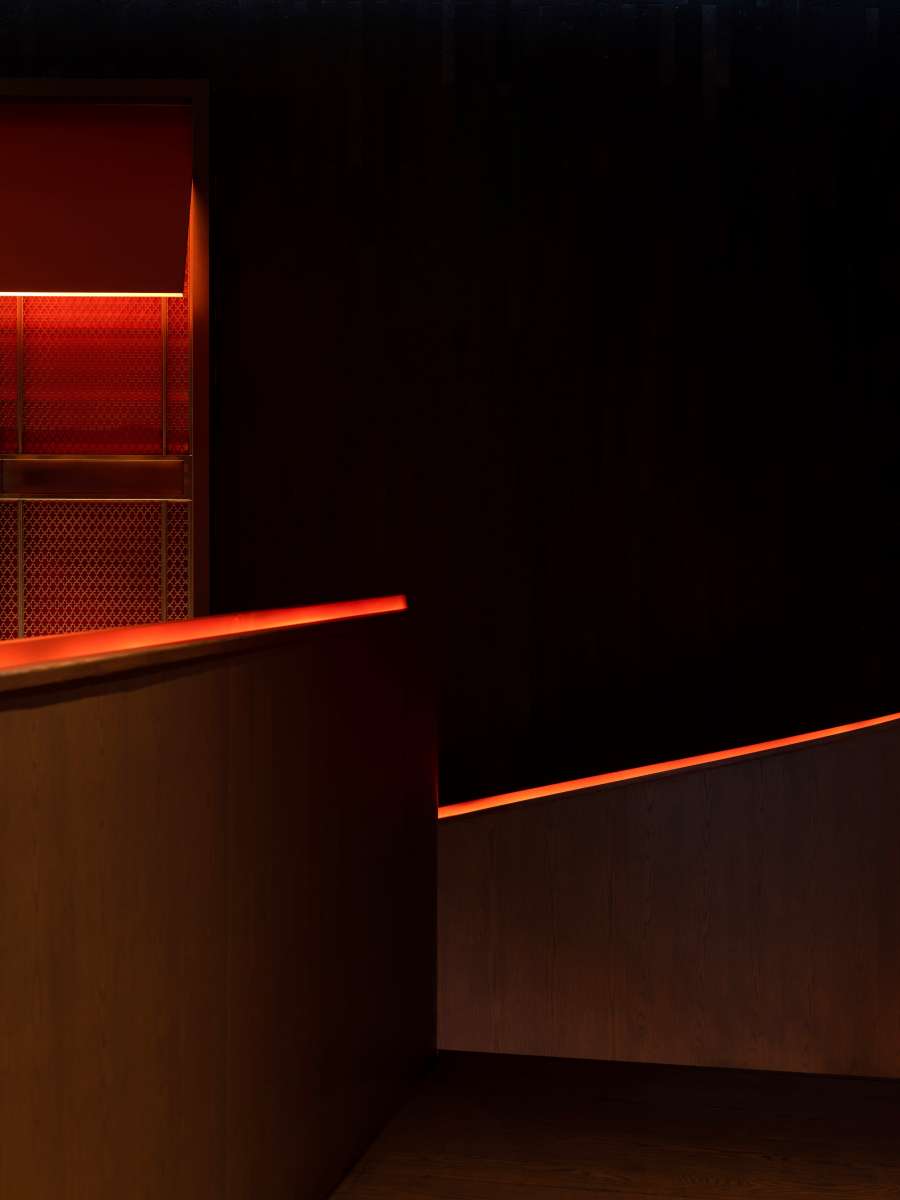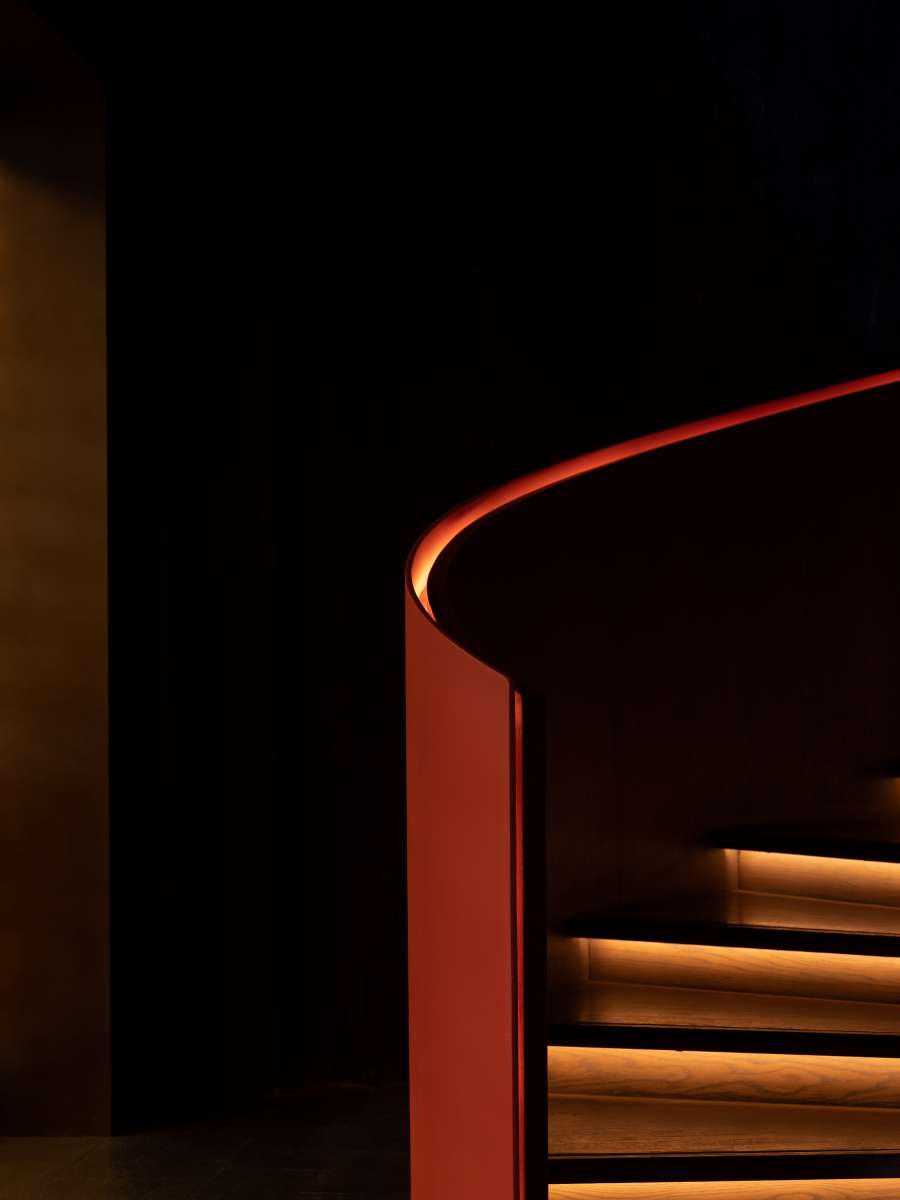 ·保留了台阶间接照明,以保障通行功能,由于这些光线被包裹在楼梯内侧,视觉效果并不突兀 。