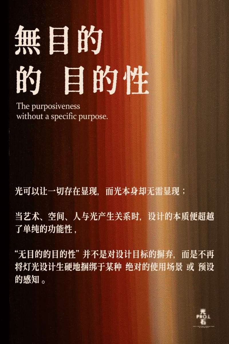 不要将灯光的目的锚定在单一的功能实现或既定的氛围上。“无目的的目的性”并不是对设计目标的摒弃,不再将灯光设计生硬地捆绑于某种 绝对的使用场景 或 预设的感知  。